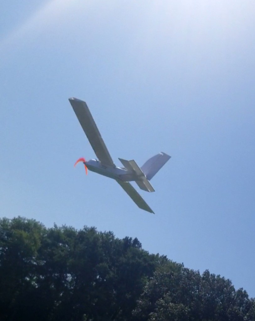 I heard nominal beeps once the battery was connected. The elevator worked. The rudder, though sub-optimal in design, worked. The motor worked and rotated in the correct direction. I put the wings over the fuselage and strapped it down with rubber bands. It was time.