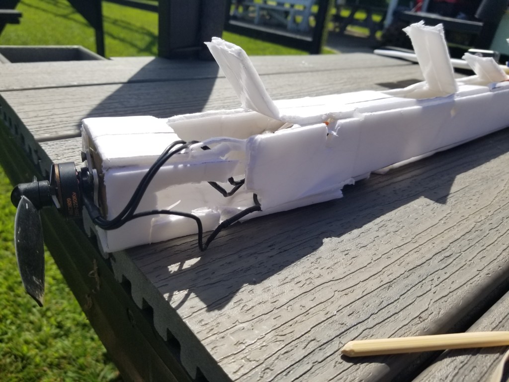 After attaching the wings and connecting the 3S LiPo battery, I tested the two control surfaces as well as checked the motor’s direction of spin. Pleasantly, all worked well.