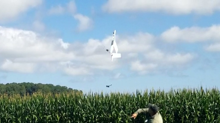 That tiny rectangle just above the corn is the battery. Poorly placed at the rear opening of the plane, it had immediately disconnected and fell out, leaving Tiberius to fall down powerless.